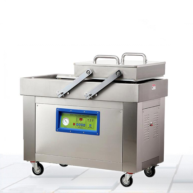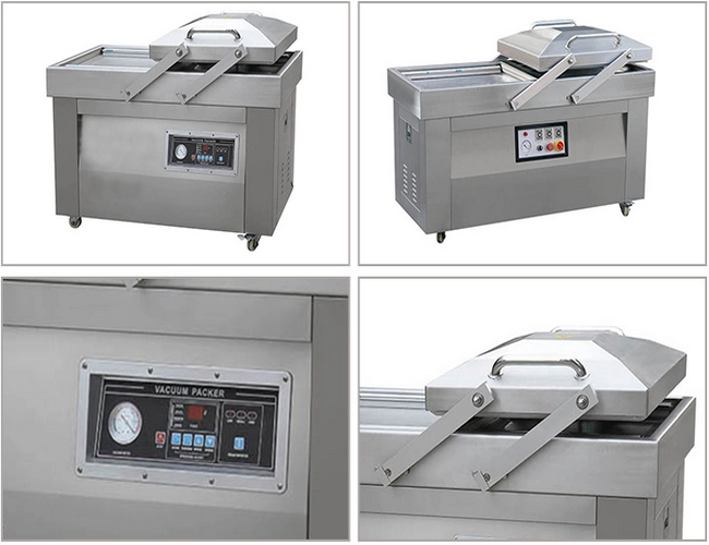上海工廠生產(chǎn)小型真空包裝機是有兩個真空室可以輪換使用,一個真空室抽真空的時候,另外一個真空室可以擺放產(chǎn)品;產(chǎn)品擺放結(jié)束,真空過程也完成了,所以省略了等待時間,工作效率是臺式真空包裝機的1.5倍,當(dāng)然價格也高于臺式真空包裝機。