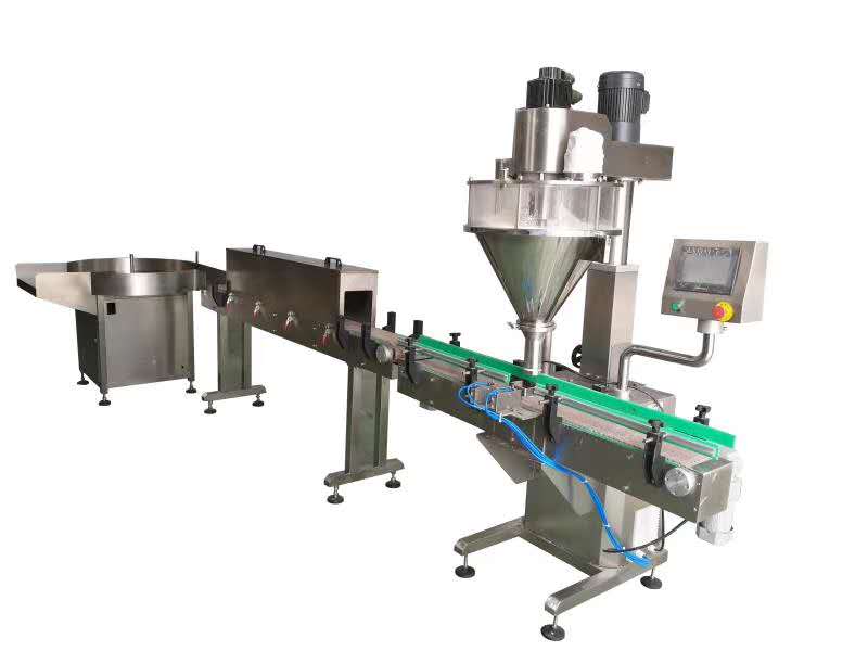 1.全自動(dòng)粉末瓶裝灌裝生產(chǎn)線(xiàn):理瓶機(jī) →自動(dòng)上料機(jī) →單頭粉末灌裝機(jī) →旋蓋機(jī)(或封罐機(jī))→瓶口鋁箔封口機(jī) →貼標(biāo)機(jī) →噴碼機(jī) →鏈板輸送帶 →裝箱平臺(tái),可以根據(jù)產(chǎn)品的要求選擇流水線(xiàn)配置